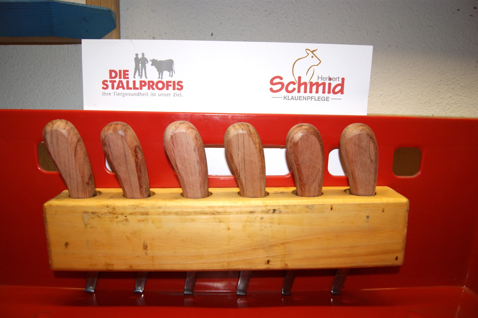 Wussten Sie eigentlich, dass selbst neue Messer den Anforderungen des routinierten Klauenpflegers nicht gerecht werden? Die Stallprofis schleifen neue Messer deshalb grundsätzlich nach. Gerne kann so ein wirklich scharfes Messer von ihnen käuflich erworben werden. Damit dieses auch dauerhaft scharf bleibt, schärfen wir stumpfe Messer.